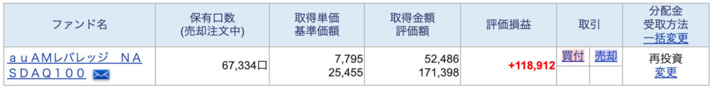 | auレバナス(特定) | 52,486円 | 171,398円 | +226.56% |