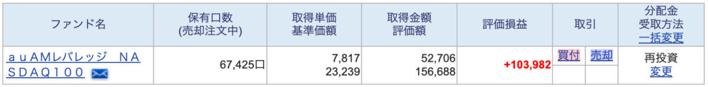 | auレバナス(特定) | 52,486円 | 156,688円 | +198.53% |