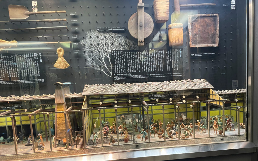 途中に、金山の歴史展示室があり、江戸時代の金の精製工程がミニチュアで展示されていました。