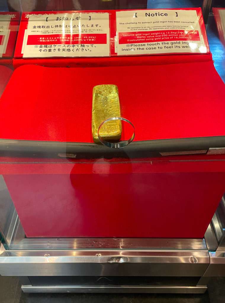 その展示室の中に、2億5000万円相当の金塊が触れるコーナーがありました。