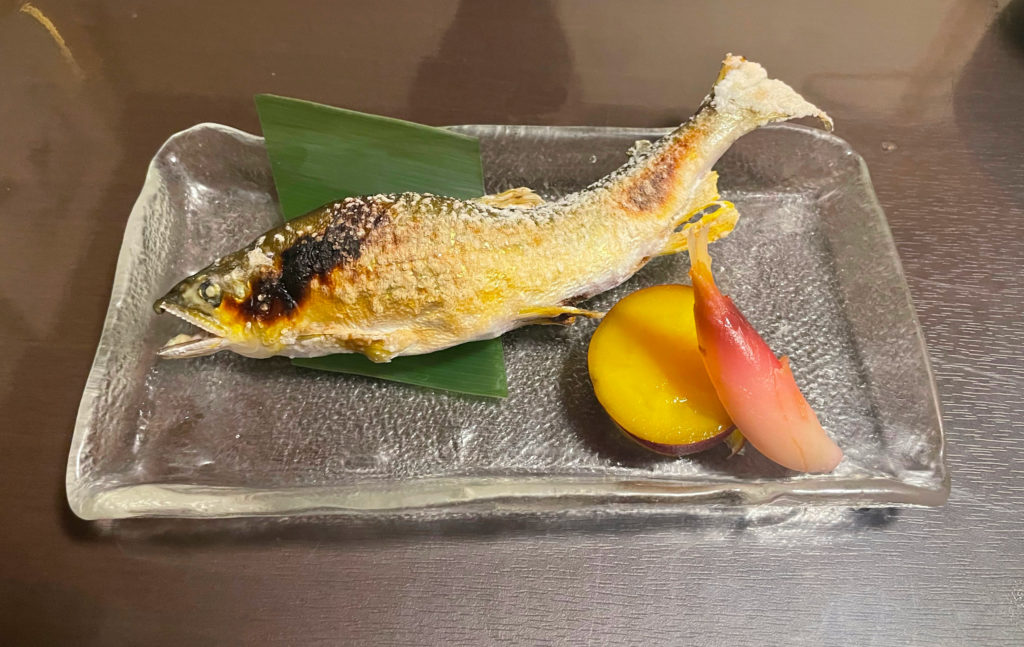 あゆの塩焼きは夫のリクエストで注文しました。